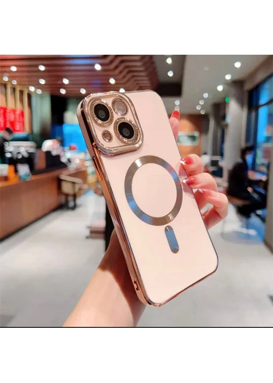 Силиконовый чехол "Luxury Plating" with MagSafe для Apple iPhone 14 Plus Пудровый
