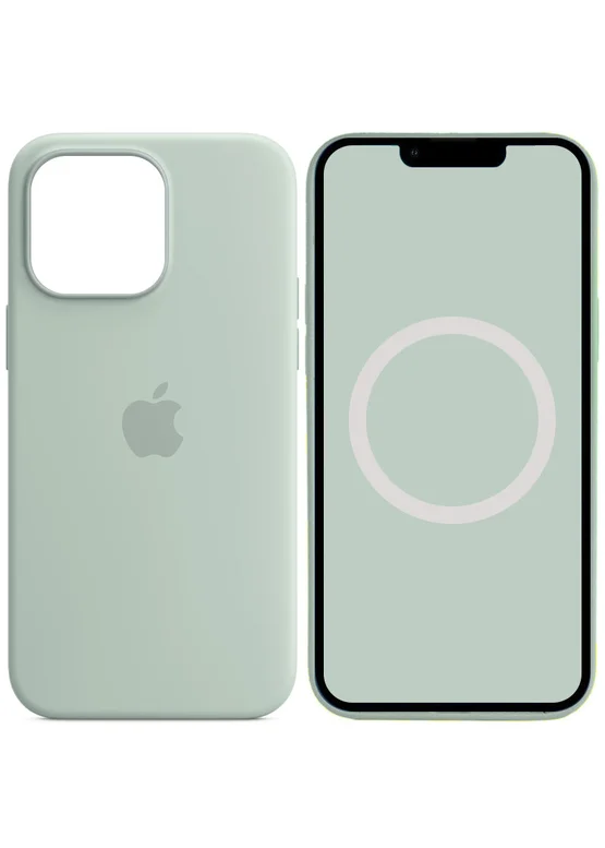 Чехол Silicone case (AAA) full with Magsafe and Animation для Apple iPhone 14 Pro Max (6.7") Бирюзовый / Succulent