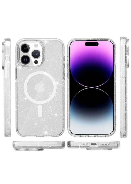 Чехол TPU Galaxy Sparkle (MagFit) для Apple iPhone 14 Pro Max (6.7") Clear+Glitter