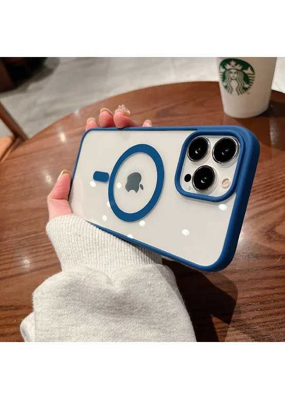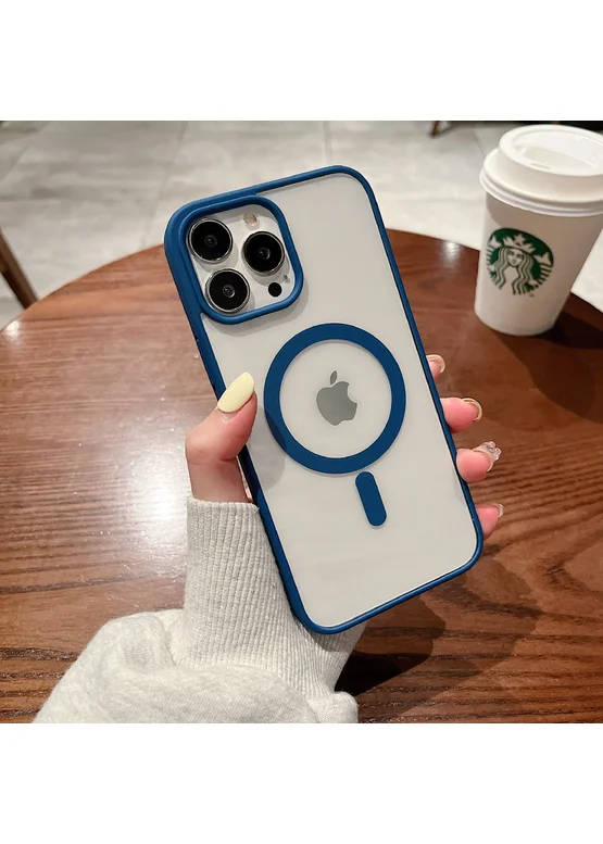 Дизайн чехла "Luxury Acrylic" with MagSafe также заслуживает внимания. Синий цвет придает телефону изысканный вид, а прозрачные вставки из акрила добавляют стиля и элегантности.