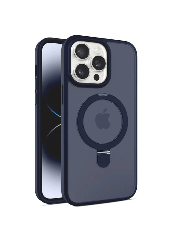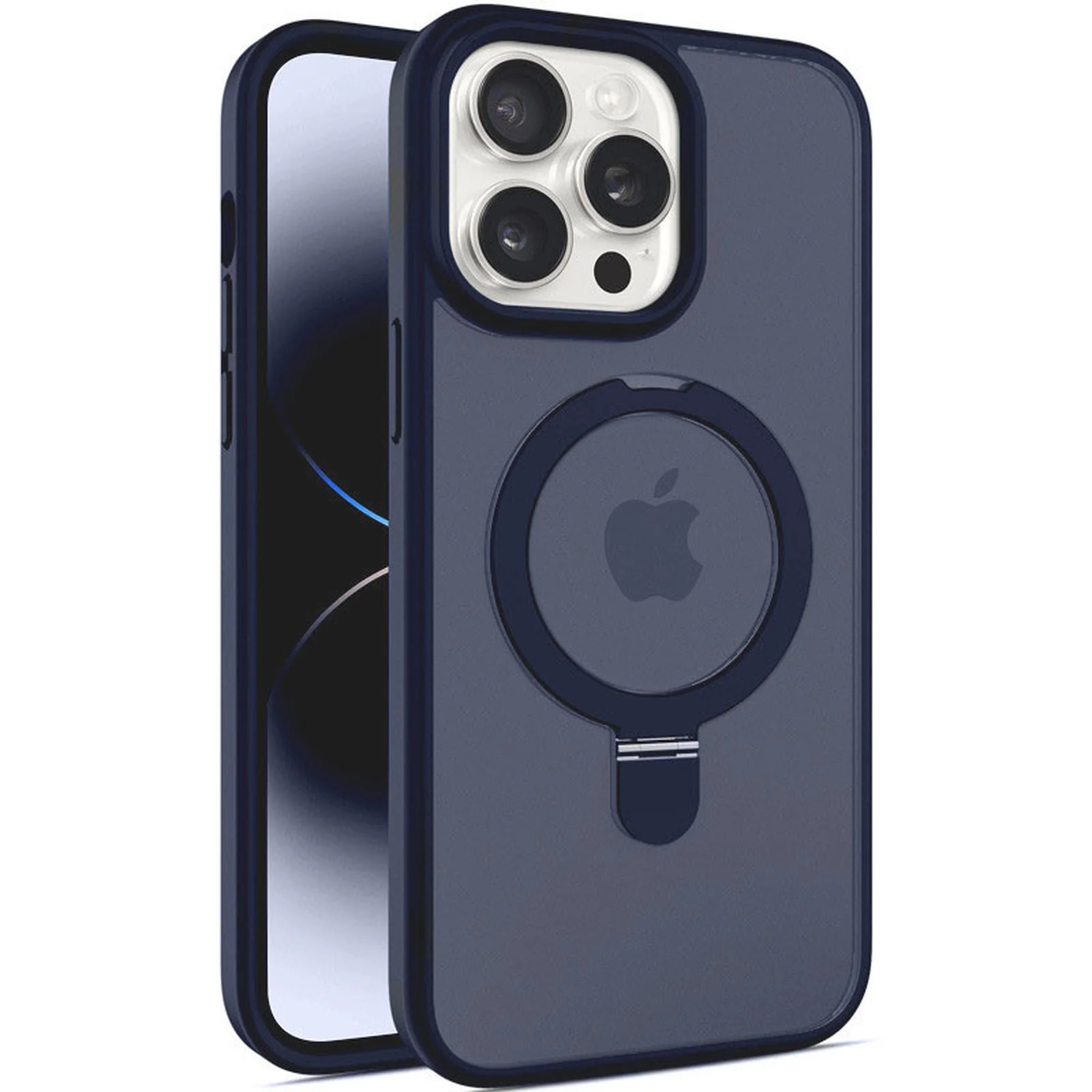TPU+PC чехол Metal Buttons with MagSafe Colorful HQ Ring для Apple iPhone 14 Pro Max (6.7") Dark Blue