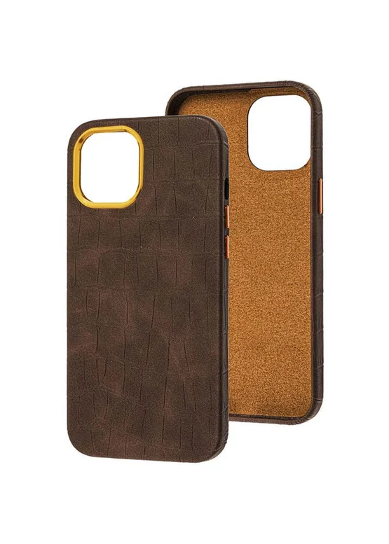 Кожаный чехол Croco Leather для Apple iPhone 14 Pro (6.1") Brown