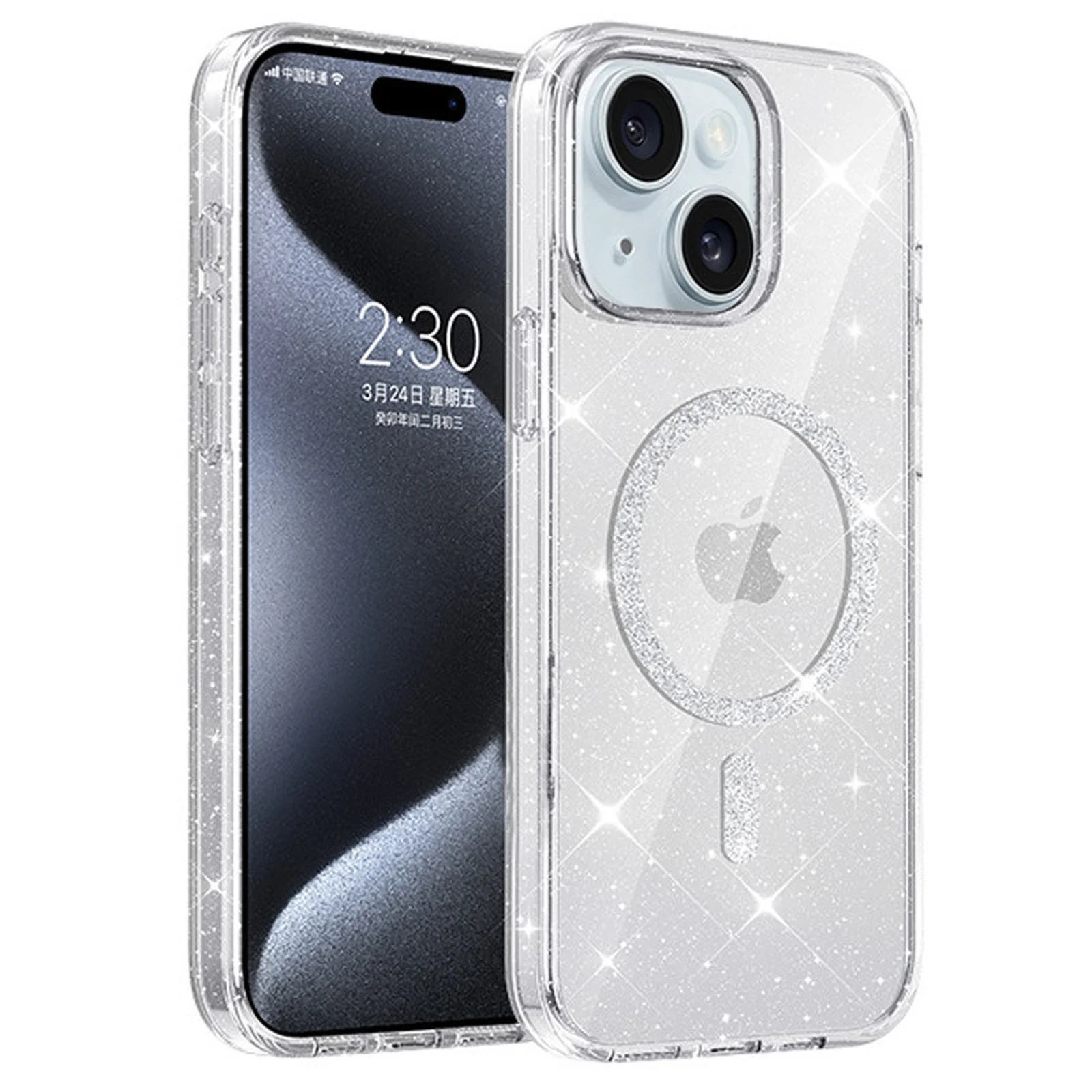 Чехол TPU Eclipse Sparkle (MagFit) для Apple iPhone 14 / 13 (6.1") Clear