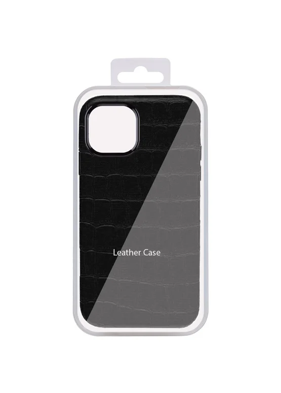 Кожаный чехол Croco Leather для Apple iPhone 14 (6.1") Black