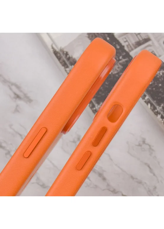 Кожаный чехол Leather Case (AAA) with MagSafe and Animation для Apple iPhone 14 (6.1") Orange
