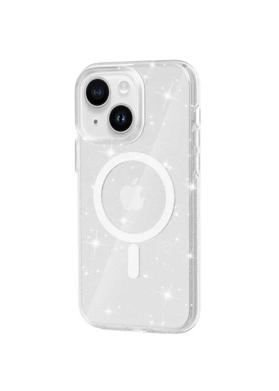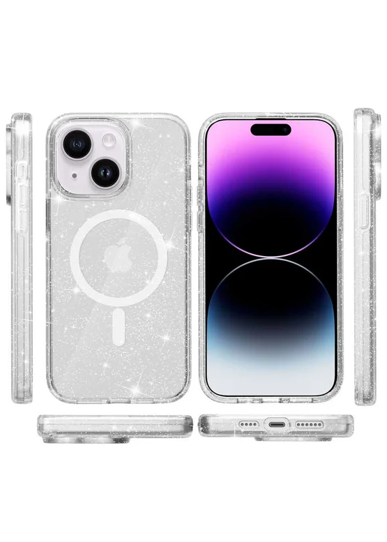 Чехол TPU Galaxy Sparkle (MagFit) для Apple iPhone 15 Plus (6.7") Clear+Glitter