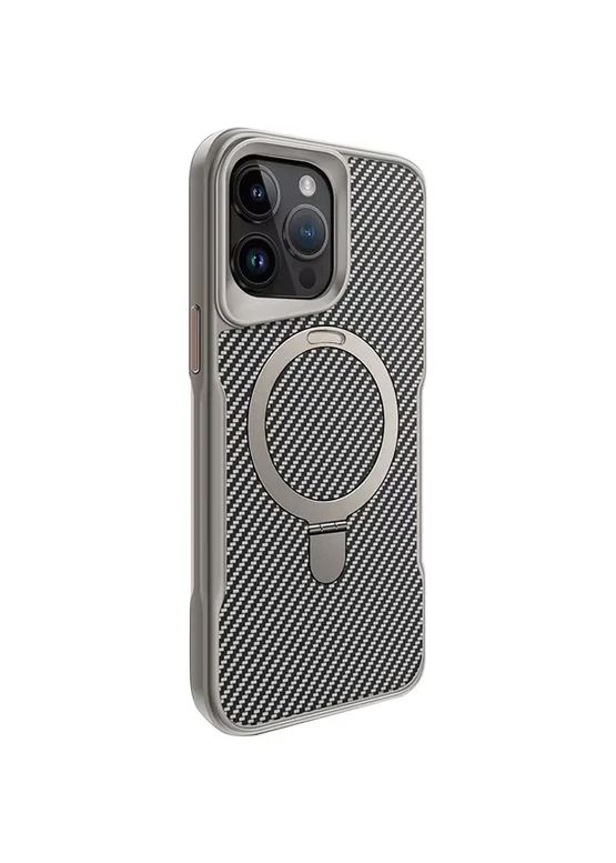 TPU+PC чехол Metal Buttons with MagSafe Carbon Ring для Apple iPhone 15 Pro Max (6.7") Серый