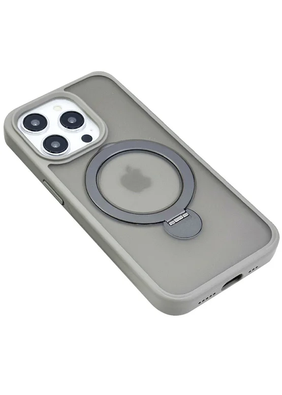 TPU+PC чехол Metal Buttons with MagSafe Colorful HQ Ring для Apple iPhone 15 Pro Max (6.7") Grey