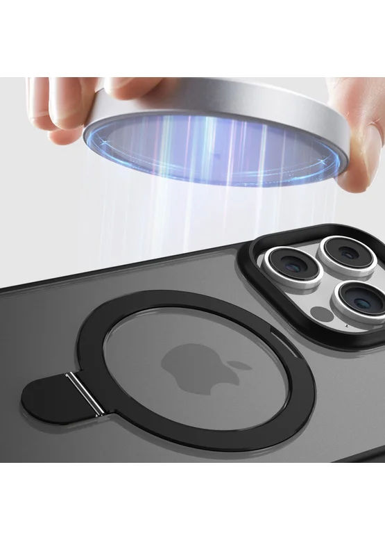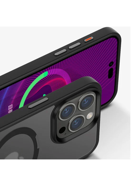 TPU+PC чехол Metal Buttons with MagSafe Colorful HQ Ring для Apple iPhone 15 Pro (6.1") Black