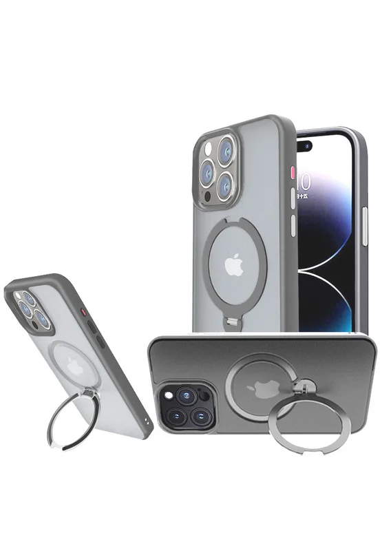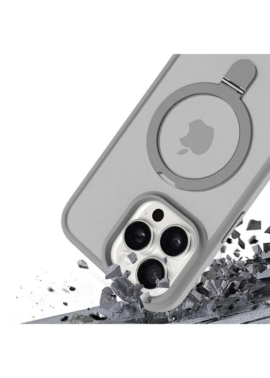 TPU+PC чехол Metal Buttons with MagSafe Colorful HQ Ring для Apple iPhone 15 Pro (6.1") Grey
