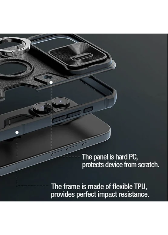 TPU+PC чехол Nillkin CamShield Armor (шторка на камеру) для Apple iPhone 15 Pro (6.1") Черный