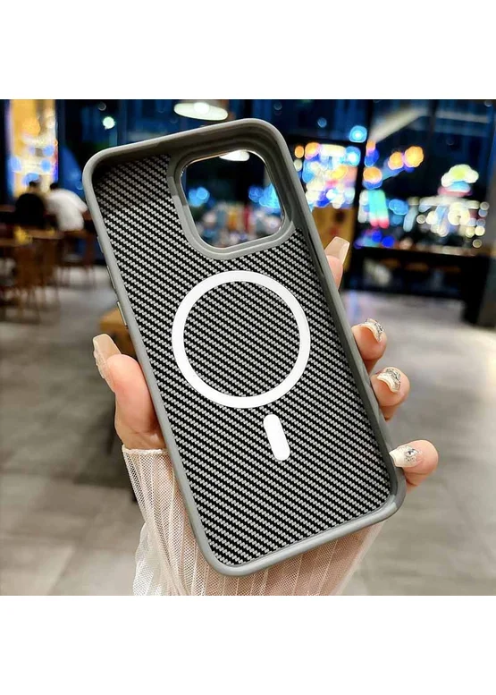 Чехол TPU+PC Carbon with MagSafe для Apple iPhone 15 (6.1") Grey