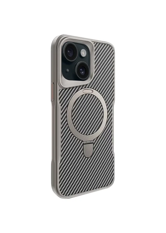TPU+PC чехол Metal Buttons with MagSafe Carbon Ring для Apple iPhone 15 (6.1") Серый