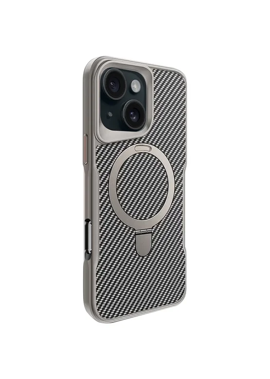 TPU+PC чехол Metal Buttons with MagSafe Carbon Ring для Apple iPhone 16 Pro Max (6.9") Серый