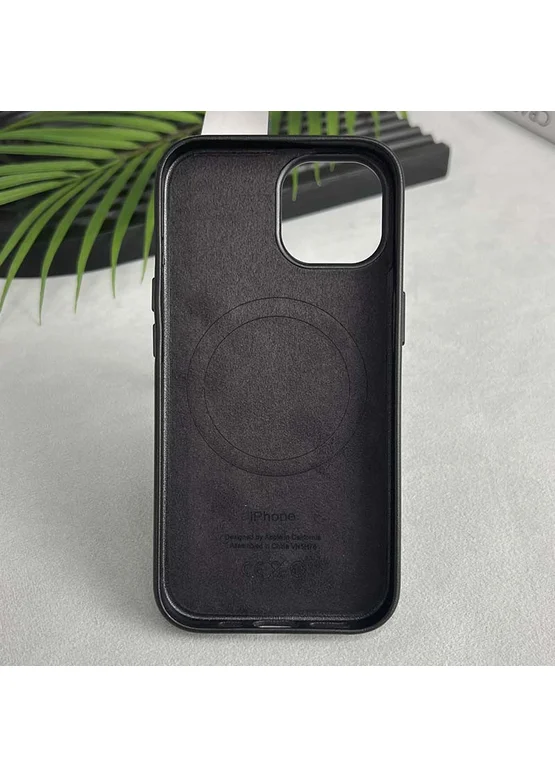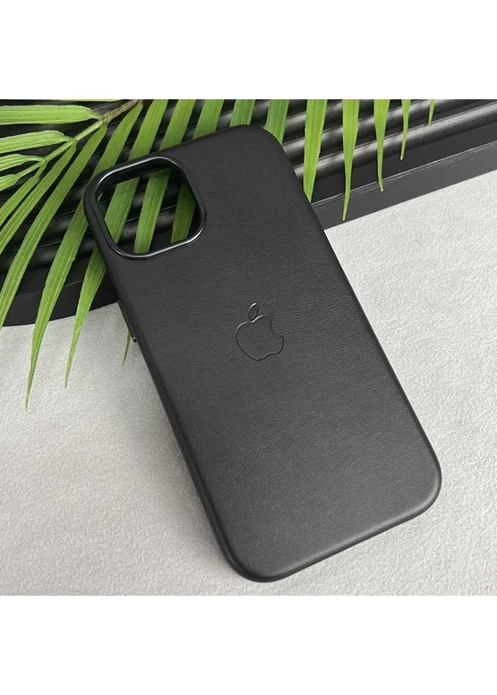 Кожаный чехол Leather Case (AAA) with MagSafe and Animation для Apple iPhone 16 Pro (6.3") Black