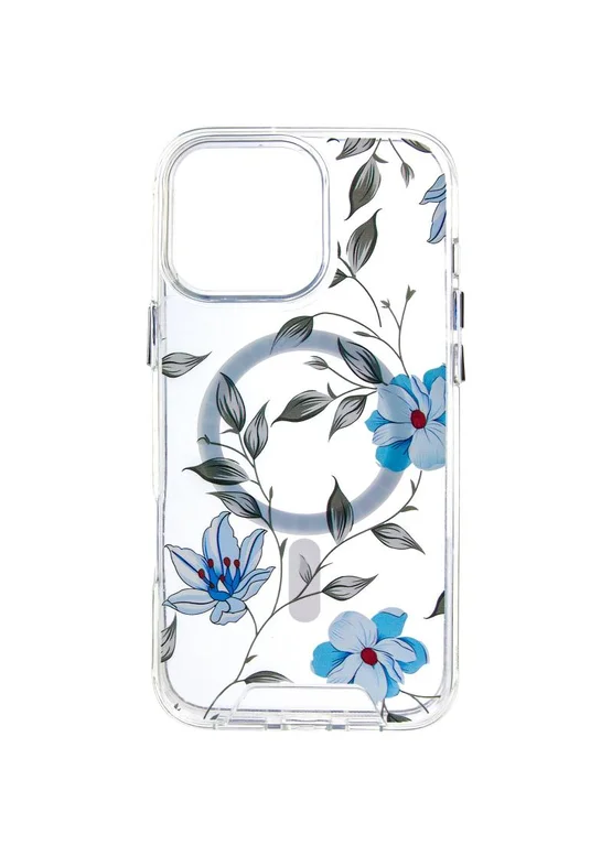 TPU+PC чехол Clear Garden with MagSafe для Apple iPhone 16 Pro (6.3") Blue Blossom