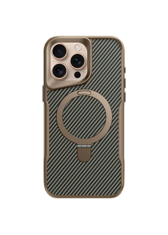 TPU+PC чехол Metal Buttons with MagSafe Carbon Ring для Apple iPhone 16 Pro (6.3") Золотой
