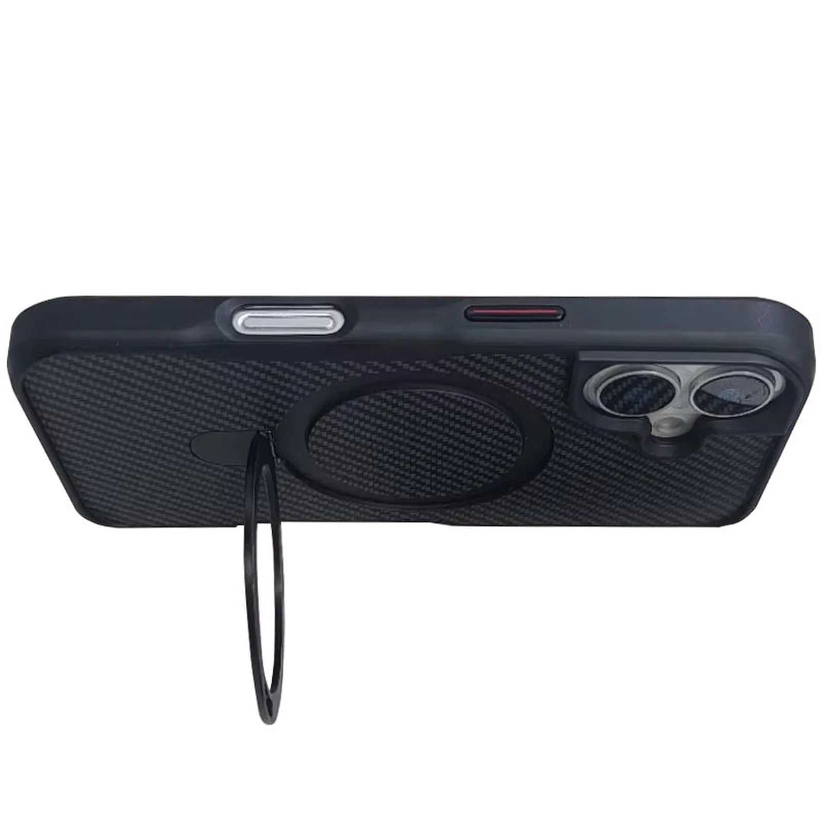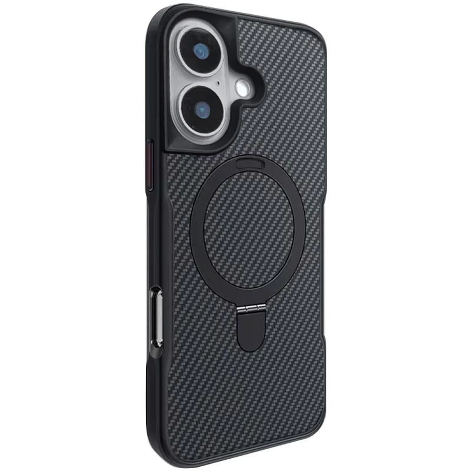 TPU+PC чехол Metal Buttons with MagSafe Carbon Ring для Apple iPhone 16 (6.1") Черный