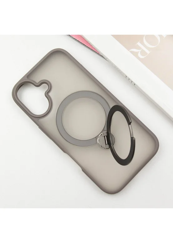 TPU+PC чехол Metal Buttons with MagSafe Colorful HQ Ring для Apple iPhone 16 (6.1") Grey