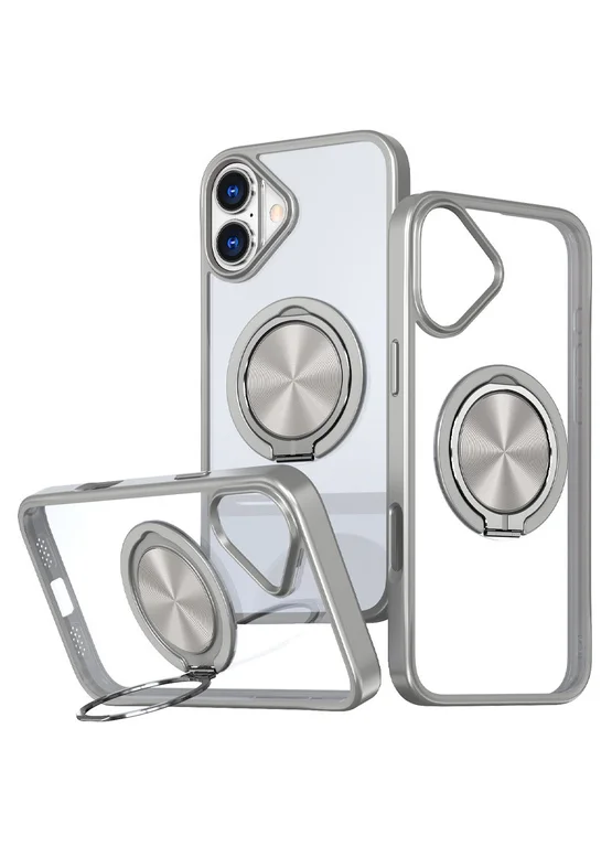TPU+PC чехол Metal Ring with MagSafe для Apple iPhone 16 (6.1") Серый