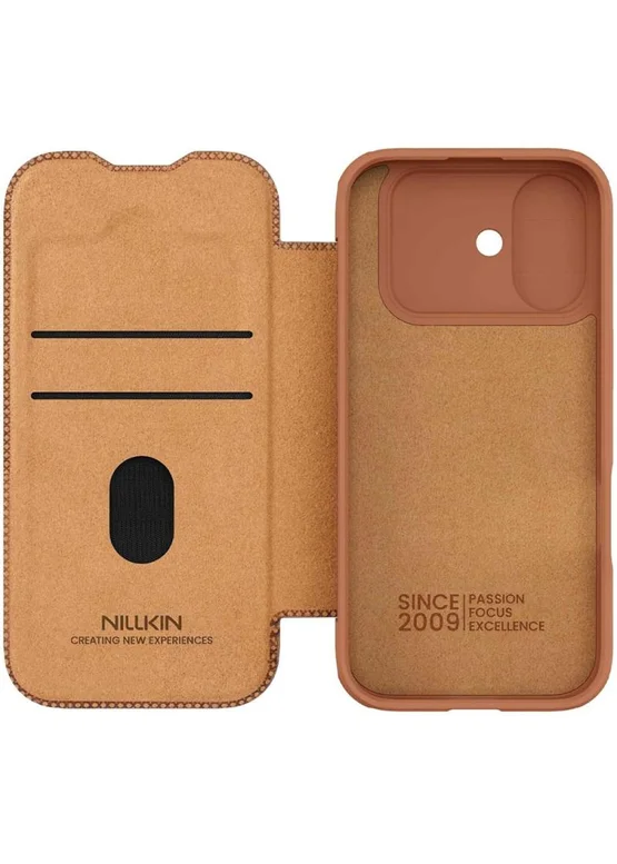 Кожаный чехол-книжка Nillkin Qin Pro Camshield для Apple iPhone 17 (6.3") Brown