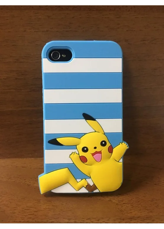 Резиновый 3D чехол "Pikachu" голубой для iPhone 4/4S