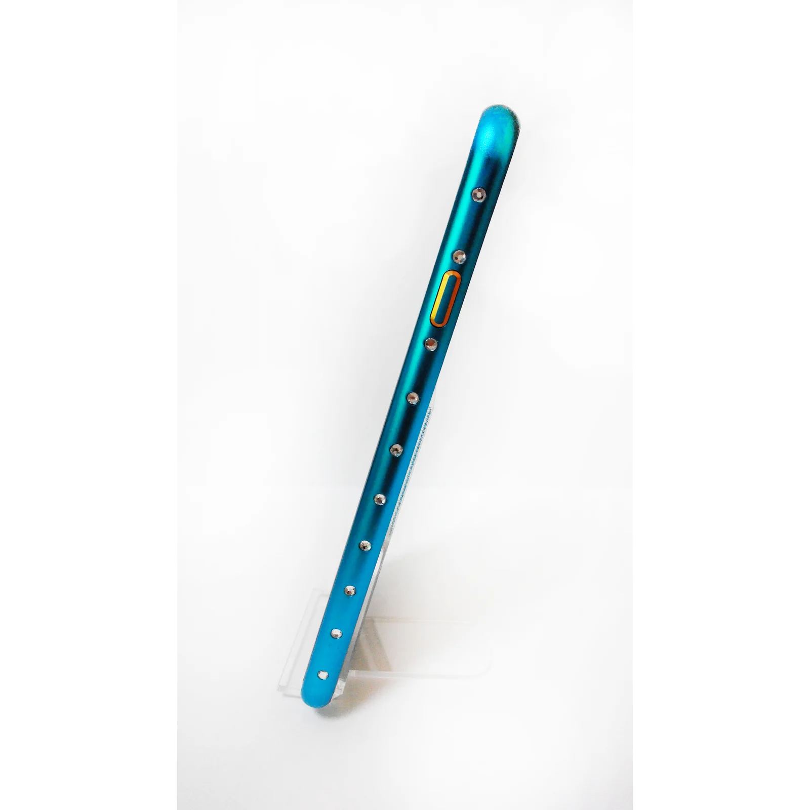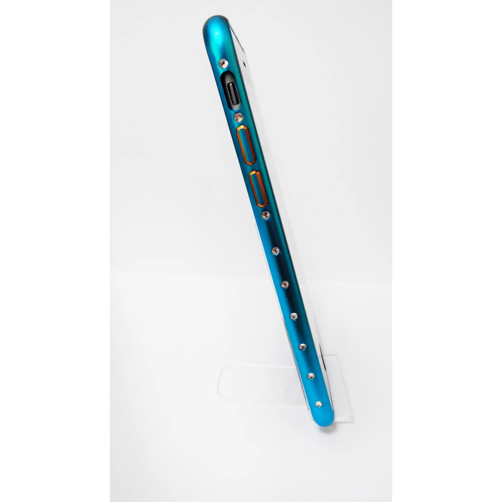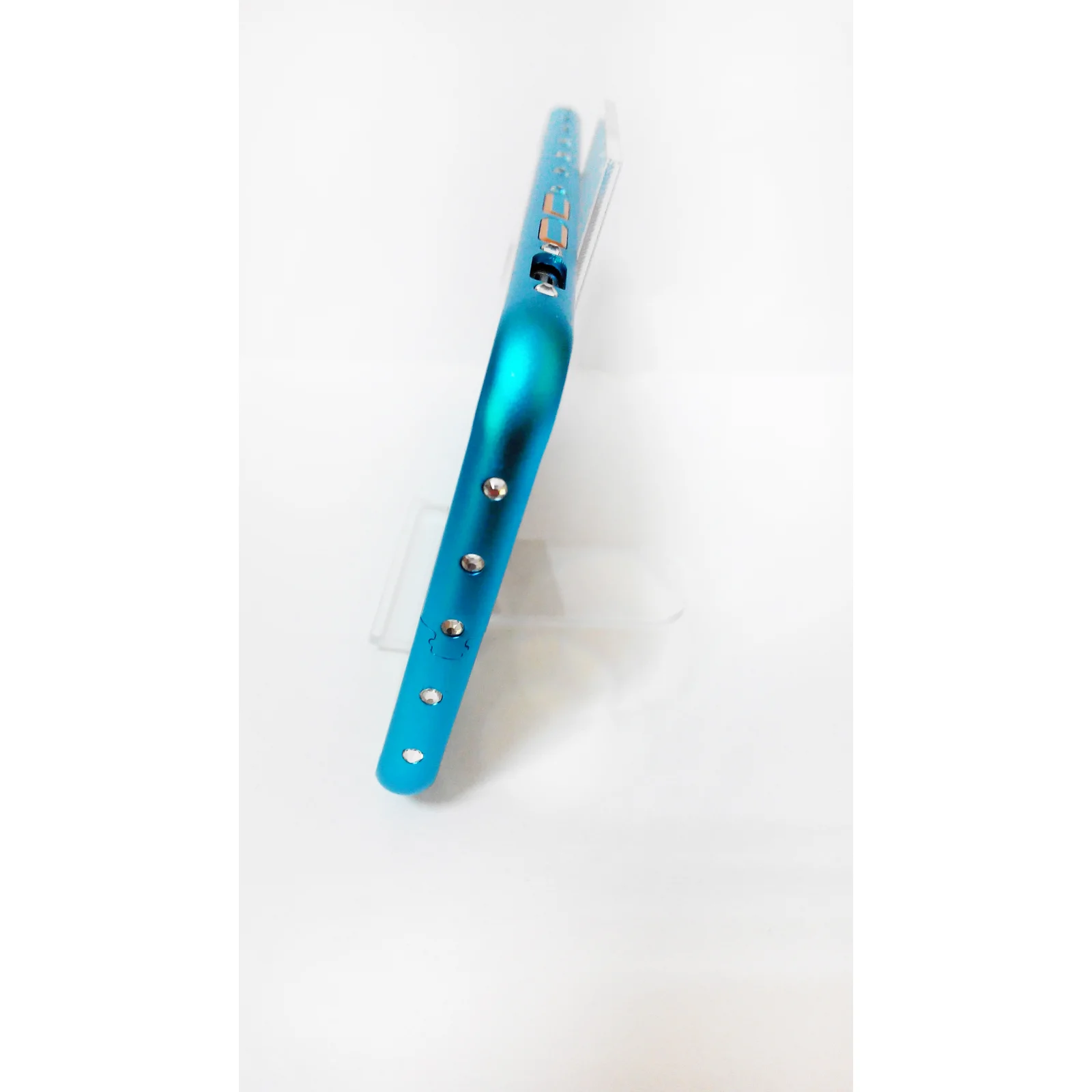 Алюминиевый голубой бампер со стразами для iPhone 6/6S