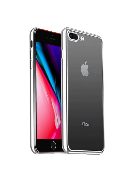 Прозрачный силиконовый чехол с глянцевой окантовкой Full Camera для Apple iPhone 7 plus/8 plus (5.5) Серебряный