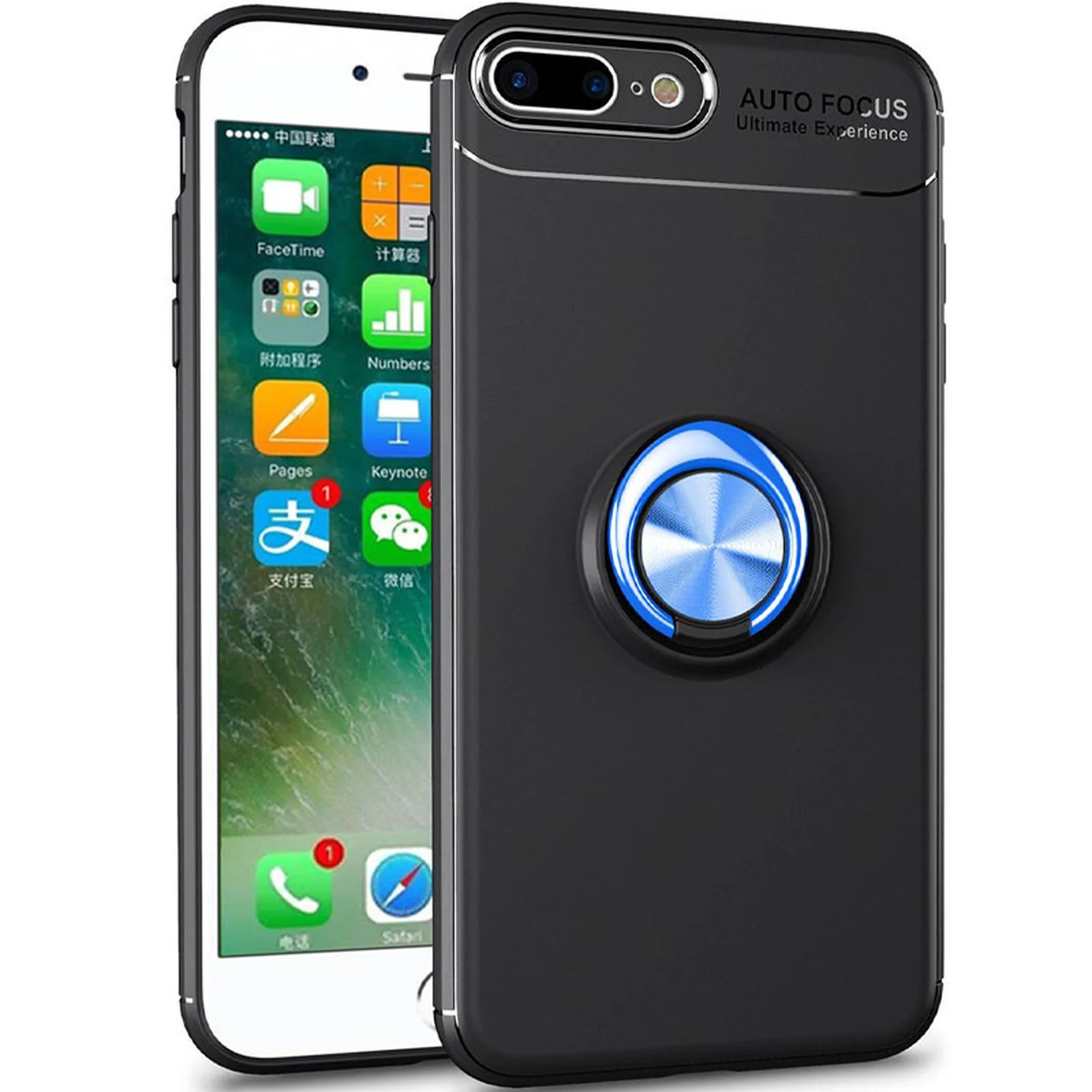 TPU чехол Deen ColorRing под магнитный держатель (opp) для Apple iPhone 7 plus / 8 plus (5.5") Черный / Синий