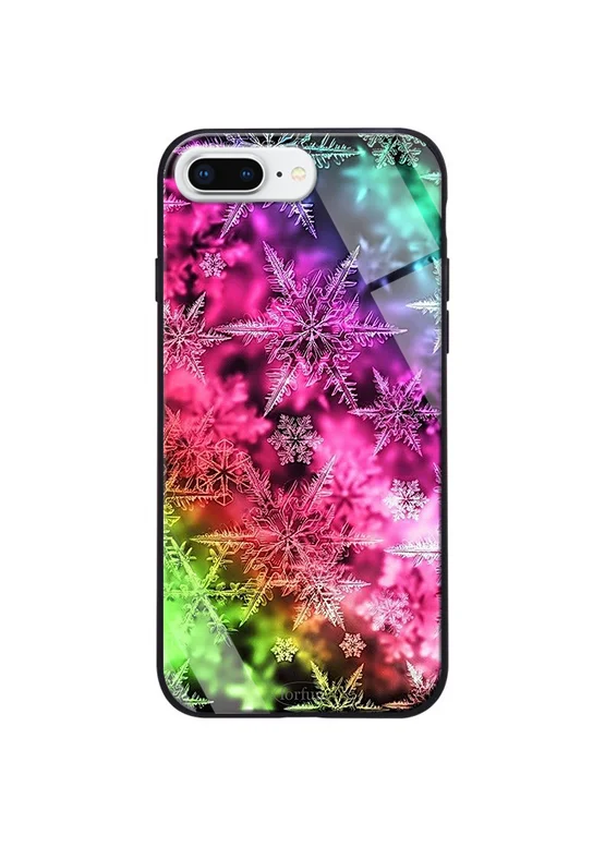 TPU+Glass чехол ForFun для Apple iPhone 7 plus / 8 plus (5.5") Разноцветные Снежинки / Розовый