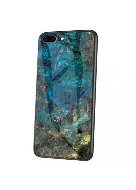 TPU+Glass чехол Luxury Marble для Apple iPhone 7 plus / 8 plus (5.5") (Морская волна / Голубой)