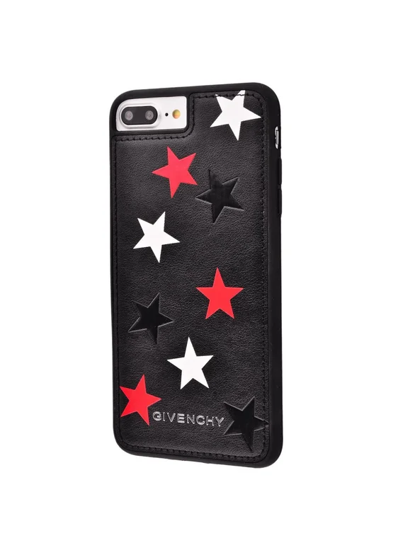 Задняя поверхность чехла декорирована контрастными нашивками и принтом по нижнему краю.