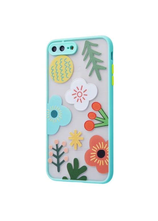 TPU+PC чехол Picture Color Buttons для Apple iPhone 7 plus / 8 plus (5.5") (Бирюзовый / Цветы)