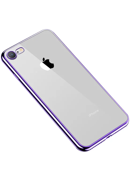 Прозрачный силиконовый чехол с глянцевой окантовкой Full Camera для Apple iPhone 7/8/SE(2020) (4.7") (Сиреневый)