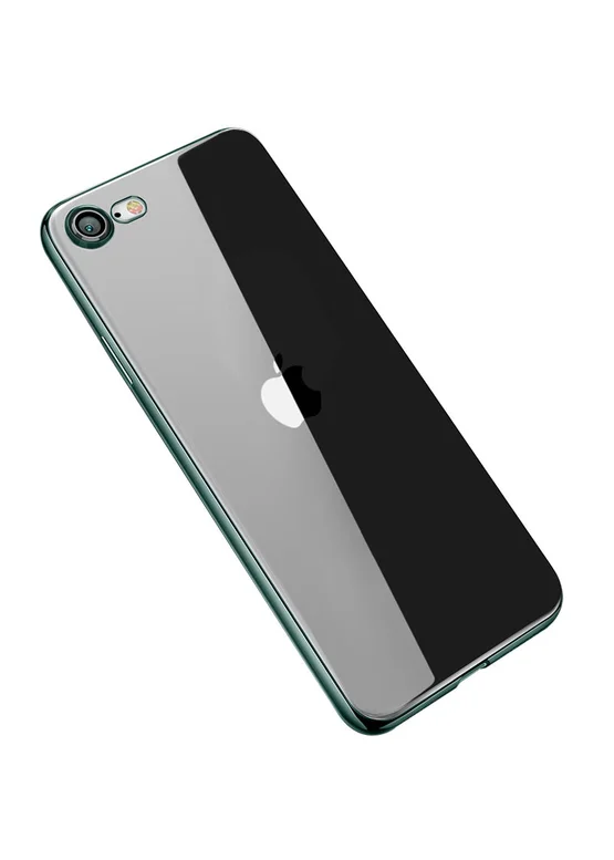 Прозрачный силиконовый чехол с глянцевой окантовкой Full Camera для Apple iPhone 7/8/SE(2020) (4.7") (Темно-зеленый)