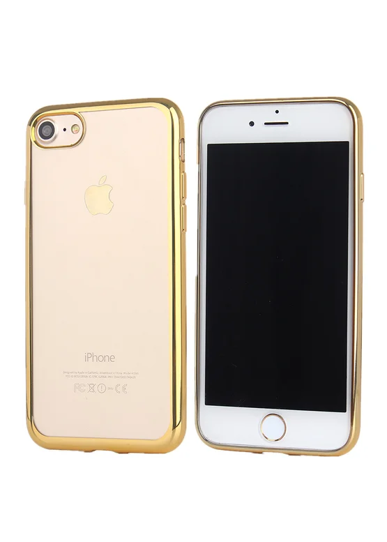 Желаете защитить и украсить свой iPhone, но не утерять его ценность? Тогда золотой, прозрачный чехол на iPhone 7/8 специально для вас! Он отлично продуман, сделан из высококачественного силикона, приятный на ощупь, красивый и очень удобный в применении. Чехол не портит качество звука и долгое время сохраняет форму, то есть не растягивается. Благодаря прозрачному корпусу Ваш iPhone 7/8 сохранит свой внешний вид не теряя ценности, а золотые поля по бакам украсят и придадут изысканности Вашему гаджету.