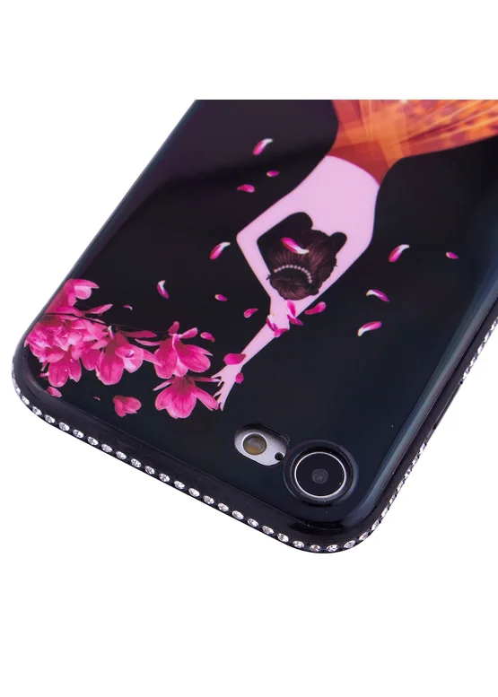 TPU чехол Magic Girl со стразами для Apple iPhone 7 / 8 (4.7") (Черный / Лепестки)