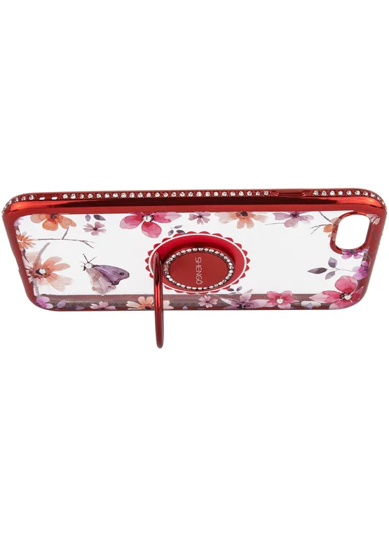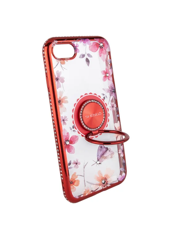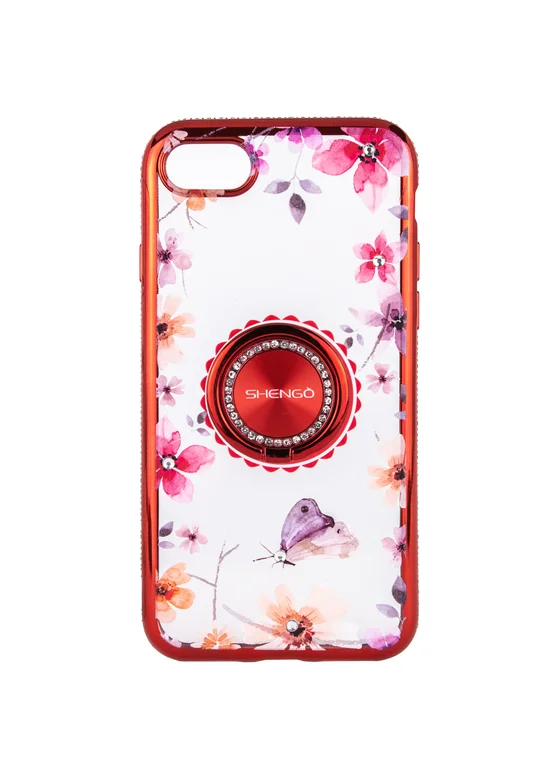 TPU чехол Shengo со стразами и кольцом-держателем для Apple iPhone 7 / 8 (4.7") (Красный)