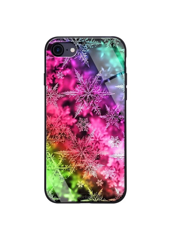 TPU+Glass чехол ForFun для Apple iPhone 7 / 8 (4.7") Разноцветные Снежинки / Розовый