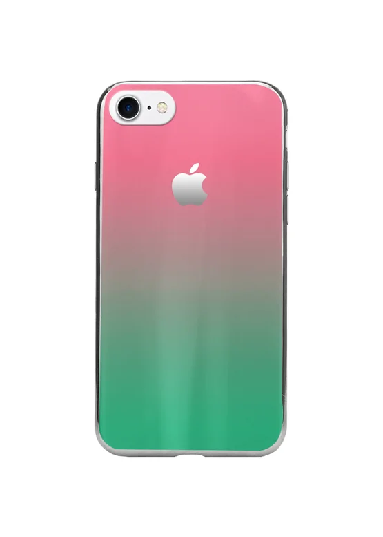 TPU+Glass чехол Gradient Aurora с лого для Apple iPhone 7 / 8 (4.7") (Розовый / Бирюзовый)