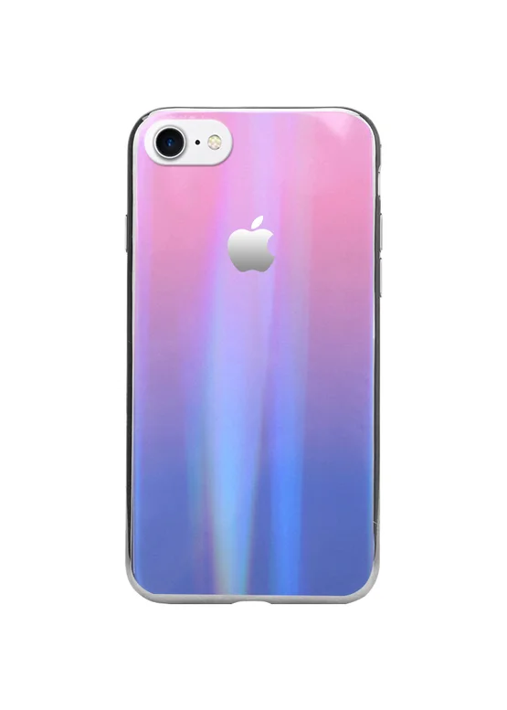 TPU+Glass чехол Gradient Aurora с лого для Apple iPhone 7 / 8 (4.7") (Розовый / Сиреневый)