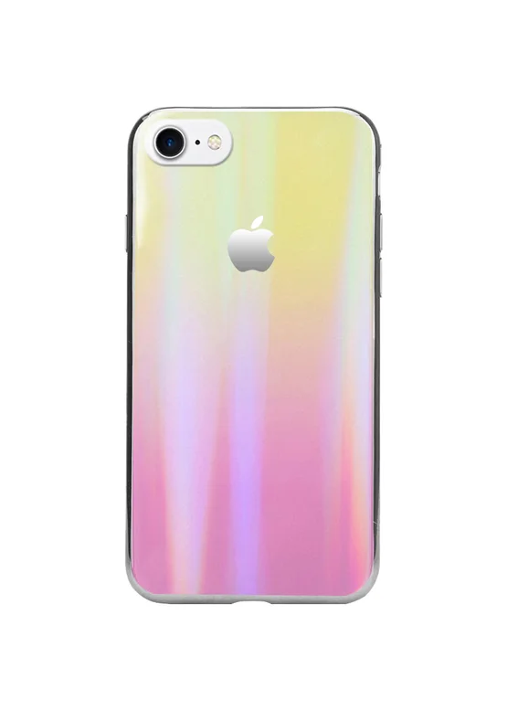 TPU+Glass чехол Gradient Aurora с лого для Apple iPhone 7 / 8 (4.7") (Золотой / Розовый)