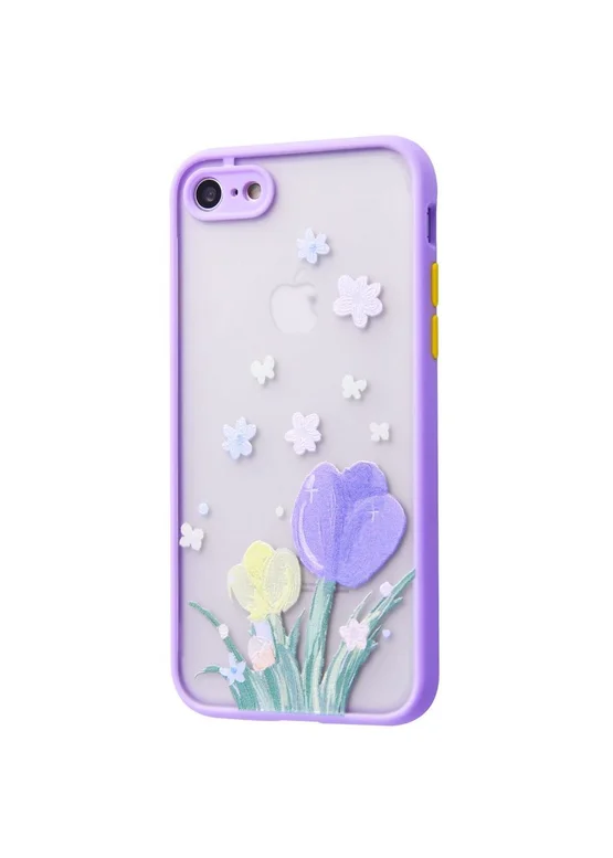 TPU+PC чехол Picture Color Buttons для Apple iPhone 7 / 8 / SE (2020) (4.7") (Сиреневый / Цветы)