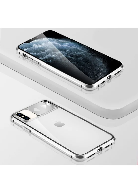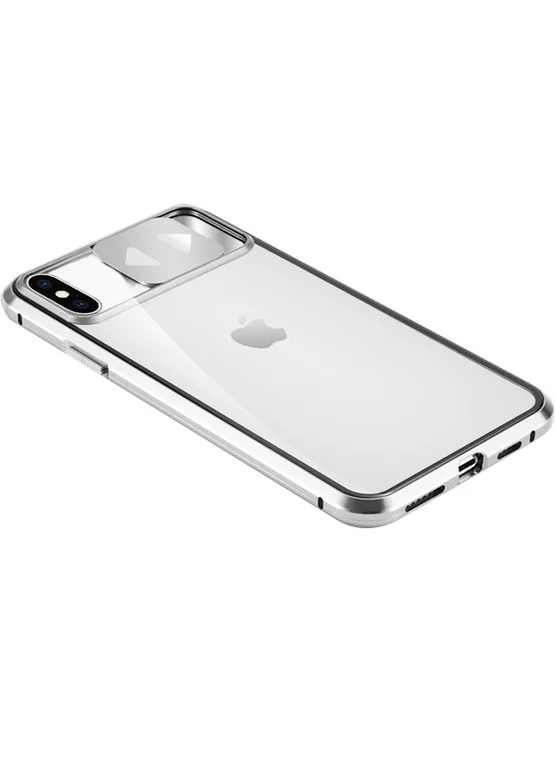 Чехол Camshield 360 Metall+Glass со шторкой для камеры для Apple iPhone X / XS (5.8") (Серебряный)