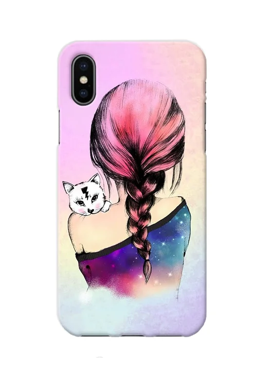 Чехол "iDAY" пластиковый для iPhone X/XS Девушка с котом