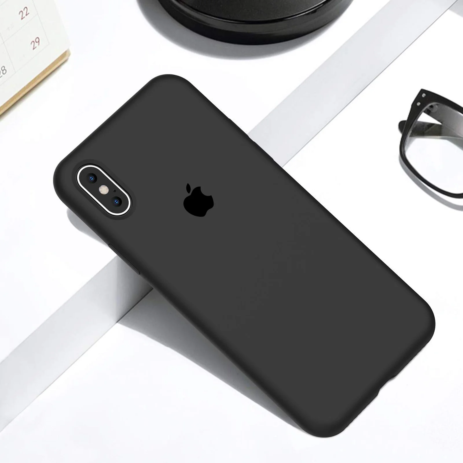 Чехол Silicone case (A) (с закрытым низом) для Apple iPhone X/XS Черный / Black