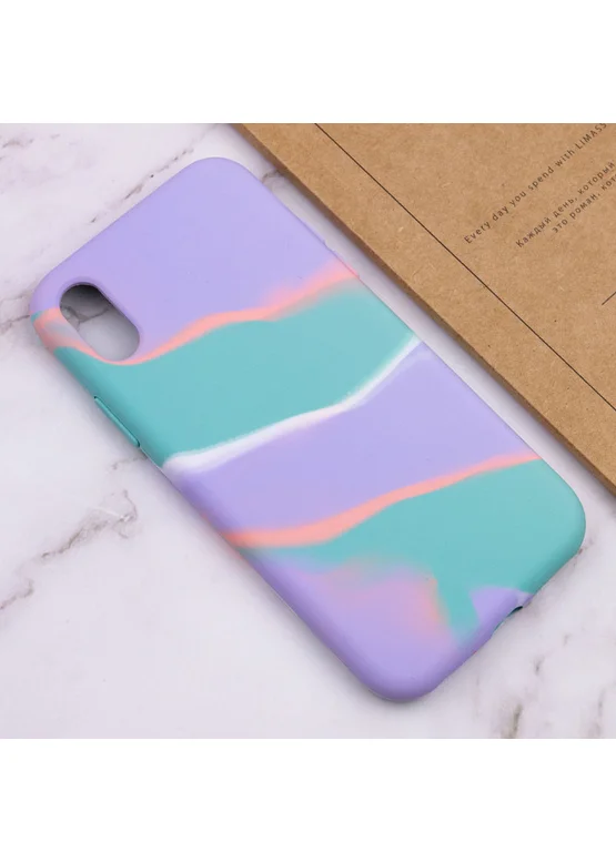 Чехол Silicone case full Aquarelle для Apple iPhone X / XS (5.8") Бирюзово-сиреневый