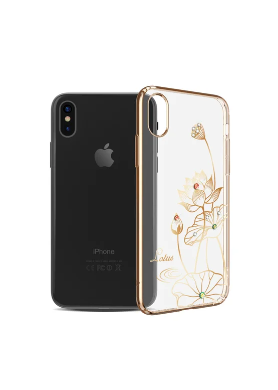 Пластиковый чехол со стразами SWAROVSKI "Kingxbar" Lotus золотой для iPhone X
