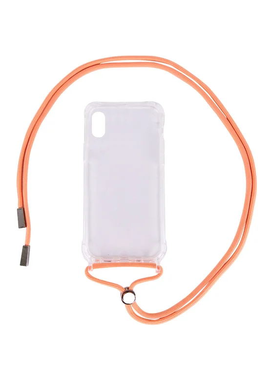 Чехол TPU Crossbody Transparent для Apple iPhone X / XS (5.8") (Персиковый)
