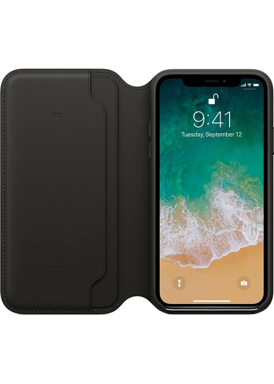 Кожаный чехол-книжка "Apple Leather Folio" Black (HC) для iPhone X